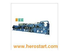 I. Functions and Features 1. Sawtooth-type pulverizer 2. Demolding from the grooved wheel 3. Elasticity of elastic ribbon in frequency control 4. Leading layer cutting and top-sheet dotting integrated 5. Cutting device in scraping-cutting mode 6. Frequency conversion driving system 7. Non-stopping phase regulation 8. Constant tension control of coil unwinding 9. Change of the material roll can be done automatically or manually in running state of the machine 10. Alarming of material feeding interruption for stopping the machine, and inspection of sheet-lacking of small package for interrupting glue applying are controlled by PLC 11. Touch screen control panel providing man-machine conversation and realizing interface graphic control 12. Automatic finished product lining-up and output design for the whole interface graphic control 13. Whole welded structure design for the whole machine, firm and durability II. Technical Parameters 1. Power: 380V 50Hz 2. Rate Power: 80KW 3. Capability: 350-400 pieces/min 4. Air Wastage: 1000 litre/min Air Pressure(10-12) Bars 5. Qulification: ≥ 98% 6. Size(m): 21× 1.8× 2.8(L× W× H) 7. Weight: 20T