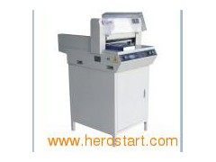 Automatic pushing paper function:Automatic pushing paper design, saving taking book time, increasing working efficiency *Independent press paper patented technology *Numerical control cutting is clear at a glance(450Z and 450Z3) *Leading speed, dynamics and cutting thickness *Adjusting blade from outside *Automatic pushing paper(book) out function(450Z and 450Z3) *Increased safety blade lock(Holdback pawl) New 450 series paper cutting machines(CB-450V6, CB-450Z3) Independent press paper patented technology:Completely resolve the inaccurate problem caused by spring pressing paper. Leading speed, dynamics and cutting thickness:The cutting speed, dynamics and thickness are all increased by 30%.Cutting thickness up to 5CM, 450 series meet more books and paper cutting requirements. High-quality alloy knife optional:High-quality alloy knife is an optional.Grind one time can cut up to 12000 times. Blade fine-tuning from the outside of machine patented technology:Provide fast fine tuning technology when blade is so old that cant cut the paper beneath Extensive front table:It can satisfy 460mm paper bisection (safety cover no opening), which can make operation more comfortable and safer. LCD display:Intuitive operation prompts, error alarm clear at a glance, more convenient operation. Numerical control cutting:Cutting size with arithmetic figure set.So the cutting size is clear at a glance. Put and push paper without leakage design:The push paper platform is designed with lumpy surface to avoid paper leakage. Safety:CE standard, intellectual protection, two hands operation, transparent safety cover, two way air buttons protection and so on.These make usage safer and more comfortable. Paper Cutting Machine CB-450Z.