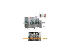 This machine contains rinsing, low vacuum filling machine and capping machine 3in1 monoblock, This machine mainly use for plastic bottles, it used in the wine, also changed some parts to fill the beer, juice. 1) This machine is mainly used for wine and sauce filling operation; 2) This machine is combined of rinsing, filling capping; 3) the whole procedure is full automatic, and suitable for glass bottle and aluminum steal_proof caps for filling vodka, wine, sauce and etc.; 4) The applicable bottle type can be adjusted freely and conveniently, and easily operation; 5) The filling type is adopted new type negative pressure filling, making the filling quickly and steadily; 6) That's why the machine has more capacity and benefit compared other machine with same specification; 7) This machine is adopted advanced programmable controller PLC, and make the machine running automatically, and bottle input conveyor adopts transducer with speed adjustable, and bottle output conveyor adopts speed adjustable motor; 8) Cooperation with transducer of main machine makes the bottle running smoothly and reliably; 9) It is convenient to operate with high automation because of every part of machine is inspected to run by photoelectric detector; 10) The machine is idea-preferred equipment for beverage makers.Model: BXGF24/24/6 Capacity:500ml(b/h) 5000 Power (kw) 4 Size : (mm) 3700×2570×2350 Weight:(kg) 5000