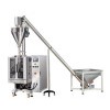 Introduce: The machine adopt servo motor control, screw measuring, precision 1%. Adjust product weight without any tools. Filling head can be changed, suitable for mix film and PE film. Application: Packing powder such as milk powder, coffee powder, flour powder etc. Technical Characteristics 1. English and Chinese screen display, operation is simple. 2. PLC computer system, function is more stable, adjustment any parameters not need stop machine. 3. It can stock ten dispose, simple to change variety. 4. Sever motor drawing film, position accurately. 5. Temperature independent control system, precision get to +-1oC. 6. Horizontal, vertical temperature control, suitable for various of mix film, PE film packing material. 7. Packing type diversification, pillow sealing, standing type, punching etc. 8. Bag-making, sealing, packing, print date in one operation. 9. Working circumstance quiet, low noise.Type DBIV-4230PA Bag length 80 -300mm (L) Bag width 50 -200mm (W) Max width of roll film 420mm Packing speed 5-60bags/min Measuring range 150-1200ml Air consumption 0.65mpa Gas consumption 0.3m3 /min Power voltage 220V Power 2.2KW Dimension (L)1320mmx(W)950mmx(H) 1360mm Weight of machine 540kgs