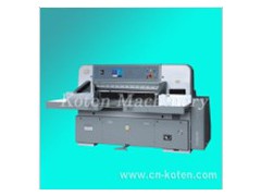 Program Controlled guillotine machine Introduction. 1. Control system is controlled with PLC, with large capacity, secure performance and 300, 000 hursmemory. 2. Display screen is 10.4-inch Korean LG touch screen, which has many language and USB interfaces. 3. Japanese servomotor is used as paper feeding system, for it is low in noise, adjustable in speed ranging from 6m/min to18m/min, and location precision up to 0.01. 4. Rapid knife change device. 5. Safey system, whose raster is up to CE standard, is higher is safety factor. 6. Major low voltage control part of the complete machine adopts imported electric appliances. Partial pivotal parts and PLC form dual protection, which maximizesModel 920D 130D 137D 115D Max. Cutting Width 920cm 130cm 137cm 115cm Max. Cutting length 110cm 130cm 145cm 115cm Max. Cutting length 11.5cm 13cm 16.5cm 16.5cm Max. Clamping pressure 30000N 40000N 45000N 40000N Cutting speed 45Time/min 45Time/min 45Time/min 45Time/min Main motor power 3kw 4kw 4kw 4kw Air pump motor 0.55kw 0.75kw 0.75kw 0.75kw Sending paper motor 0.55kw 0.55kw 0.55kw 0.55kw Weight 2100kg 3800kg 4500kg 3800kg Overall dimensions 230x120x165cm 280×140×191cm 295×140×200cm 275×140×191cm Width with sideway 242cm 280cm 287cm 265cm /: 172cm 216cm 236.4cm 216cm Length 218cm 249cm 277cm 249cm Front table length 74.9cm 71.5cm 73cm 71.5cm Table height 90cm 90cm 90cm 90cm Voltage (three-phase) V361-399 V361-399 V361-399 V361-399 Wire size 2.5mm 2 2.5mm 2 2.5mm 2 2.5mm 2