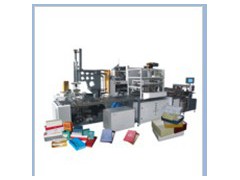 This production is the most advanced equipment of making the rigid set-up box (such as shoe-box, shirt box, underwear box, gift box, food box, hardware box etc). It adopts PLC programmable controller, photoelectric tracing system, touch-sensitive screen, achieving paper feeding, gluing, cardboard folding, spotting, automatic arm guiding, wrapping, box coming out in one process. The entire processes are automatic. Compared with the traditional hand made production, the produce efficiency improves by 50 times. (Please visit our website or call us for the detail information) Main Characteristics: 1. Feeding system feeds the paper wrap piece by piece automatically. 2. Equipped with heat exchanging Gluing system. 3. Heat Sealed device equipped achieves corner sticking for cardboard in one process. 4. Spotter system achieves exactly position for unwrapped box and glued wrap by servomotor and vacuum suction belt conveyor, with precision error 0.5mm. 5. Automatic arm guiding device is between conveyor belt and Wrapper unit, who is controlled by computer. 6. Wrapper unit achieves box-feeding, side-winding, roll-folding and rolling over. 7. It adopts PLC programmable controller, photoelectric tracing system and touch-sensitive screen. The wrapped box is finished in one process. 8. Automatic trouble diagnosing. Zhongke Packaging Machinery Co., Ltd. Professional manufacturer of full automatic rigid paper box making machine, paper box making lines, rigid paper box making lines, paper box making machinery, rigid paper box making machinery, paper box forming machinery, rigid paper box forming machinery, paper box equipment, rigid paper box equipment, pper box, rigid paper box, paper box machinery and so on.Paper wrap size Amin 150mm Paper wrap grammage Min 100g/ Amax 580mm Max 160g/ Bmin 180mm Cardboard blank thickness Min 0.8mm Bmax 660mm Max 3mm Box size Lmin 125mm Speed 1500(Cycle/h) Lmax 400mm Paper pile height 260mm Wmin 85mm Cardboard pile height 1000mm Wmax 300mm Electrical power 20kw Hmin 20mm Glue tank capacity 45(Litre) Hmax 125mm Air supply 12(Litre/min) Turn in depth:R Rmin 12mm Net weight 8000kg Rmax 25mm Machine overall dimension L6.8XW3.5XH2.6m
