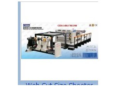 Model CHM-1400 1. Type of cutting : Top blade rotary, bottom blade fixed 2. Weight of paper : 60-550 GSM 3...Reel diameter : Max 1800mm(71") 4. Finished width : Max 1400mm(55") 5. Finished sheet-Length : Min. 450-Max. 1450 mm 6. Num. Of rolls cutting : 2 rolls 7. Cutting accuracy : ± 0.5mm(L<1000mm) ± 0.1% (L≥ 1000mm) 8. Max. Speed of cutting : 300cuts/min 9. Max. Cutting speed : 300m/min 10. Requirement of the air pressure : 0.8MPa 11. Voltage : AC380V/220Vx50Hz 12. Total power: : 29KW 13. Accuracy of the roller paper sheet : ± 0.5mm(L<1000mm); ± 0.1%(L≥ 1000mm); ± 0.1%(accelerate or decelerate). This depend on machine stable and operation when cutting. (cutting one paper roll, the cutting length is right ) 14. Output : The real output depend on the material, and the weight of the paper, and right operate process