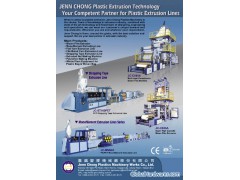 JENN CHONG manufacturing program ranges from complete blown film extrusion system for single or multi-layer film, monofilament extrusion lines, flat yarn and fibrillated yarn making machine, strapping tape making machine, extruded net making machine and w