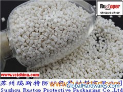 Rustoper® VCI Benefits Industry Proven Track RecordMany years of application and testing ensure reliable resultsMultimetal ProtectionSame product provides protection for ferrous and non-ferrous metalsSimple ApplicationRecessed and non contact areas are protectedSafe for personnel and EnvironmentNon-toxic and recyclable ,Rustopvci alleviate health and environment concernsWe are VCI products manufacturer that specialized in producing and exporting VCI antirust packaging materials and chemicals.General:Rustoper (corrosion terminator)VCI master batch, a base material used for producing VCI plastic film (a kind of functional plastic film which can be applied to the packing and antirust of ferrous and nonferrous metals), is a functional resin concentrated and refined from PE, compound VCI and multi additives with specific processing technology.Features/Advantages: 1 The VCI plastic film with excellent performance can be produced with a small amount of such resin added to the formulation, which is of high cost performance.2 The master batch is easy to operate and is extensively applicable to equipment and materials in selection.3 The master batch passes SGS certification and meets ROHS directives. Applicable Metals:It is applicable to ferrous metal, alloy steel, cast iron, copper, brass, bronze, plated metal, zinc and its alloy, chrome and its alloy, cadmium and its alloy, nickel and its alloy, tin and its alloy, aluminum and its alloy, and other metal materials and their products.Application Method:1  Weigh and take respectively the masterbatch and new PE granules according to the established formulation proportion, then mix them evenly and feed them for film blowing production2 Set the temperatures for the fusion range and mould head range of a blow molding machine according to the requirements, otherwise they will have effects on the quality of VCI film. 3 If it is necessary to produce colored VCI film, control the addition amount of the colored resin granules in the range of the established proportion and its PH value shall be neutral.4 Seal again the original packaging in time after taking the resin granules to avoid its being affected with damp.Custody and Storage Remarks:With sealed package, it shall be kept in a cool, dry place, away from sunshine and no contact with sources of ignition and corrosive materials. The quality guarantee period shall be twelve months from the date of delivery.Remarks:Since VCI film prevents metals from rusting by means of the continuous and adequate VCI gasified antirust particles volatilized from VCI contained in the film, thin film means less VCI content which may influence the usage effects of the product. Therefore, on the basis of our practical experience, the recommended standard thickness of the VCI film made from VCI antirust resin shall be 100um (0.10mm).Welcome your specific inquiry of our VCI master batch!We are at your service and your requirements will receive our best and prompt attention.