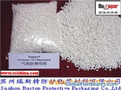 Rustoper® VCI Benefits Industry Proven Track RecordMany years of application and testing ensure reliable resultsMultimetal ProtectionSame product provides protection for ferrous and non-ferrous metalsSimple ApplicationRecessed and non contact areas are protectedSafe for personnel and EnvironmentNon-toxic and recyclable ,Rustopvci alleviate health and environment concernsWe are VCI products manufacturer that specialized in producing and exporting VCI antirust packaging materials and chemicals.General:Rustoper (corrosion terminator)VCI master batch, a base material used for producing VCI plastic film (a kind of functional plastic film which can be applied to the packing and antirust of ferrous and nonferrous metals), is a functional resin concentrated and refined from PE, compound VCI and multi additives with specific processing technology.Features/Advantages: 1 The VCI plastic film with excellent performance can be produced with a small amount of such resin added to the formulation, which is of high cost performance.2 The master batch is easy to operate and is extensively applicable to equipment and materials in selection.3 The master batch passes SGS certification and meets ROHS directives. Applicable Metals:It is applicable to ferrous metal, alloy steel, cast iron, copper, brass, bronze, plated metal, zinc and its alloy, chrome and its alloy, cadmium and its alloy, nickel and its alloy, tin and its alloy, aluminum and its alloy, and other metal materials and their products.Application Method:1  Weigh and take respectively the masterbatch and new PE granules according to the established formulation proportion, then mix them evenly and feed them for film blowing production2 Set the temperatures for the fusion range and mould head range of a blow molding machine according to the requirements, otherwise they will have effects on the quality of VCI film. 3 If it is necessary to produce colored VCI film, control the addition amount of the colored resin granules in the range of the established proportion and its PH value shall be neutral.4 Seal again the original packaging in time after taking the resin granules to avoid its being affected with damp.Custody and Storage Remarks:With sealed package, it shall be kept in a cool, dry place, away from sunshine and no contact with sources of ignition and corrosive materials. The quality guarantee period shall be twelve months from the date of delivery.Remarks:Since VCI film prevents metals from rusting by means of the continuous and adequate VCI gasified antirust particles volatilized from VCI contained in the film, thin film means less VCI content which may influence the usage effects of the product. Therefore, on the basis of our practical experience, the recommended standard thickness of the VCI film made from VCI antirust resin shall be 100um (0.10mm).Welcome your specific inquiry of our VCI master batch!We are at your service and your requirements will receive our best and prompt attention.