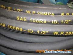 SAE R9 High pressure,four spiral steel wire reinforced,rubber covered hydraulic hoseThis hose shall consist of an inner tube of oil resistant synthetic rubber, four spiral plies of steel wire wrapped in alternating directions, and an oil and weather resistant synthetic rubber cover
