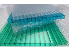 FEATURECharacteristics of PC twin-wall sheet:1, light transmittance: the light transmittance of the PC sheet is up to 89%, compare favorably with the glass. Sheet with UV coating does not turn yellowing, atomization, poor light transmission in the exposure sunlight, the loss of transmittance is only 6% after 10 years, but the PVC wastage rate is as high as 15% to 20%, and the glass fiber is 12 % -20%.2.anti-impact: PC sheet is the best impact resistance of thermoplastics, the impact resistance of polycarbonate is 10-27 times than glass and plexiglass 3.UV protection: It is coated with anti-ultraviolet (UV) coating on one side and with anti-condensation processing on the other side, with the function of anti-UV, heat insulation and anti drop. It can prevent the ultraviolet rays pass through, and suitable to protect the precious works of art and exhibits from UV damage.4.Light weight: the proportion is only 1/12 of the ordinary glass, and not easily crushed, save transport, unloading, installation, and the cost of the support frame.5.The flame: the national standard GB50222-95 confirmed the PC board is the number one level of fire-resistance, ie B1 level. The ignition point of PC sheet is 580 degrees Celsius, the combustion does not produce toxic gases from the fire self-extinguishing, will not contribute to the spread of fire.6.Bendable: It can use cold-formed way at the site according to design, install into arched, semi-circular roof and windows. Minimum bend radius is 175 times the plate thickness, It also can be hot bended.7. Sound insulation: The noise effects of the sun panels is significantly, which has the better sound insulation than the same thickness of glass and acrylic plate. Under the same conditions, the PC sheet of sound insulation can improve 3-4DB than glass. it is the material of choice for highway noise barriers in the international arena8.Energy-saving: It keep cool in summer, and keep warm in winter, The thermal conductivity (K value) of PC sheet is more lower than ordinary glass and other plastic, the insulation effect of PC sheet is 7% -25% higher than the same glass, the hest insulation is up to 49%. So that heat loss is greatly reduced, it is used to warm the equipment building, an environmentally friendly material.9.Temperature adaptability: sun panels will not crisp at the temperature of -100 ℃, and won’t softening at 135 ℃ , mechanical performance was no significant change in the harsh environment.10.weather resistance: The sun panel can maintain the physical stability of the indicators in the range of -40 ℃ to 120 ℃. Artificial weathering test of 4000 hours, yellowing is 2, light transmittance value is only 0.6% lower11.Anti-condensation: outdoor temperature is 0 ° C , indoor temperature of 23 ° C, indoor relative humidity less than 80% of the inner surface of the material, non-condensing