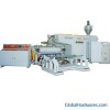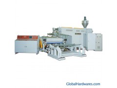 1.T-shaped die-head runner extrudes material of two colors into twin-colored sheets.