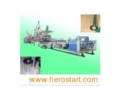 Product Description PET sheet extrusion line(production line) mainly consists of extruder, hydraulic pressure transposition device and model position take-up machine. The PET sheet thicknsee: 0.15-1.5mm The sheet width: 600-1500mm Specifications: 1) Plastic sheet production line 2) Compact structure, excellent capability 3) Optimized screw and canister design 4) Professional machining of alloy steel 5) Mold equality, extruding stabilization, high output 6) Material cooling: Wind cooling 7) Continuous production 8) Automatic material feeding, adjusting function 9) Suitable for PP, PE, PS, ABS, PET, PVC, PMMA and PC