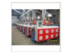 This series of extruders are applied to PVC pipe extrusion line, PVC profile extrusion line, PVC modification pelletizing line, wood plastic composite product extrusion line. Screw is nitriding processed and nitriding thickness: 0.5-0.6mm, HV: 800-900, surface roughness Ra≤ 0.8µ M Barrel nitriding thickness: 0.5-0.7mm, HV: 950, inner surface roughness Ra≤ 1.6µ M Gear box: Gears made of 20CrMoAl, nitriding and polisshing processed. Gear in distribution box is made of 38CrMoAl, nitriding processed, shaft is made of 40Cr. Barrel adopts air cooling method; Heating rings are made of cast aluminum Frequency conversion timing adopts FUJI inverter, allowable voltage range is ± 15%. Japanese OMRON thermometer, error is ± 1 centi grade. And thermometric unit consists of thermocouples. The main contactor adopts Siemens product. Wire lines are arranged in order, colors clearly demarcated and labeled accurately. Water ring exhausting device, vacuum extent: 0~0.075Mpa We can supply you a whole line for you, such as PVC pipe production line and PVC profile extrusion line.