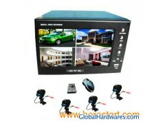 Features:Power supply for 4 channels camera With 7 inches TFT monitor, easy to use MJPEG compression Supports CIF and PTZ functions 4-channel video input and 1-channel video output USB connection to PC Professional software for video playback and storage NTSC/PAL selectable Video lost alarm Supports HDD 1,000G Schedule/motion detection recording Perfect alarm and operating log are convenient for analysis and detection Selectable English and Chinese Used in small surveillance area such as house, small supermarkets, gas stations and villasSpecification:File formats: AV1 and MYS Compression (single-channel): MJPEG Storage space: 12 to 20K/frame Video input/output:NTSC: 4 channels input/1 channel output PAL: 4 channels input/1 channel outputDisplay frame rate:NTSC: 120fps (4 x 30fps) PAL: 100fps (4 x 25fps)Recording frame rate (full screen mode):PAL:Simple scenes: 8 to 17KB Complex scenes: 10 to 23KBNTSC:Simple scenes: 7 to 14KB Complex scene: 8.5 to 19KBRecording modes: manual, schedule and motion detection Playback modes: one and four channels Searching modes: by time, date and event HDD maximum of 1,000GB, supports SATA HDD Remote control: supported Alarm: video lost alarm PTZ: supports PTZ function USB port: supports USB 2.0 Supported languages: simplified Chinese and English Power supply: 12V DC/4A Working temperature: -10 to 50°C Working humidity: 10 to 90% RH Dimension: 200 x 130 x 230mm Net weight: 2.5kg Gross weight: 3.5kgCarton size: 57.5 x 39.5 x 31.5cm Gross weight/carton: 21.6kg Carton quantity: 4 sets/carton