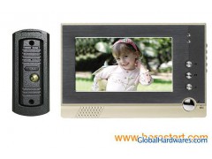 7 inches Color LCD Video Door PhoneModel NO.: GW607SC-F2A Introduction: Color LCD video door phone has an outstanding importance in the security and intercom market. It comes with a comprehensive set of video communication tools, including night vision camera(outdoor unit), 7" high resolution color TFT LCD monitor (indoor unit), cable, and other accessories. It adopts advanced technology which highly improves the stability and durability of the system.With video, doorbell, night vision, door release, and intercom functions, you will be protected from intruders at any time.This kit supports up to 8 monitors, easy added from the existing monitor with indoor cables. User can talk hands free among monitors. Features:7" high resolution color digital TFT LCD420 TVL camera resolutionLED light for night vision (white or IR, optional)Low power consumptionHands-free communicationCompatible with electronic door lock (electric lock not included)Monitoring at any timeVoiding disturbing during rest timeBrightness, contrast, and volume adjustable25 pieces of chord music ringAluminum alloy out-door camera, anti-oxidationIP44 waterproof standard outdoor unitOne camera can be connected to up to 8 monitorsStylish vision and high quality200M available distanceDo it yourself installation Applications:Buildings, offices, villas, hospitals, prisons, security booths, hotels, factories, etc. Specifications: Outdoor unitCamera sensor: Color CMOSResolution: 420 linesNight vision: 5 meters, 0 luxGain control: autoTalk time delay: 120S±10%Effective distance: 200M (4×0.75mm2)Visual angle: up/down: 66 degrees, left/right: 75.7 degreePower consumption: 2WPower source: 15V (provided by indoor unit)Operating temperature: -20 degree- +60 degreeRelative humidity: 80%-90% (KH)Installation method: embedded or wall-mounted typeDimension:95mm X 127mm X 34mm Indoor unit:Screen : 7" digital TFT LCD 16:9 displayRosolution: 800×3(RGB)×480Visual angle: up: 50 degrees, down: 70 degree, left/right: 70 degreesBrightness: 200 cd/m2Ringtone: 25 chord musicSensitivity: 56 dbSignal system: PAL/NTSC (optional)Input voltage: AC 100 V-240 V 50Hz/60HzOverall power consumption: 6 W (400 mA)Stand-by power consumption: 1.1 WPower adapter: DC15V 1200mATalk time delay: 120S ± 10%Monitor time delay: 40S ± 10%Effective distance: 200M (4×0.75mm2)Operating temperature: -20 degree- +60 degreeRelative humidity: 10% - 90% (KH)Installation method: wall-mounted typeMaterial: Aluminum alloy panel + ABS plastic shellDimension:260mm X 165mm X 30mm Contents:1 X Indoor Unit1 X Outdoor Unit1 X Power Adapter1 X 5m Connection Cable1 X Mounting Board1 X Electric Lock Cable1 X Screw Kit1 X Manual