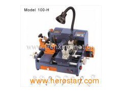 Key Cutting Tool Model 100-H Features: 1) Double head key cutting machine with high accuracy and can cut various keys worldwide 2) Can cut extra long handle keys with saw-teeth grooves and right angle grooves accurately 3) Feeding and sliding plate for cutting keys moves horizontally, is durable and easy to operate 4) The two-set vices are placed at the front and the back, they can clamp extra long handle keys of any length and can cut appropriate grooves Technical specifications: 1) AC motor: A) Available in various different voltages and frequencies B) Power: 150W 2) HSS cutter: A) Left: No. 0023 B) Right: No. 0017 3) Adjustment: A) The left guide is equipped with step-by-step centesimal ring B) The right guide is equipped with precise micro-adjustment 4) Vise: A) The left vices are multi-functional B) Right rotary vices are four-sided 5) Dimensions: 51 x 44 x 36cm Gross weight: 32kgs