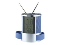 Product Description 1. Pen holder 2. Calendar 3. Alarm clock 4. Temperature 5. Pin box.