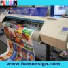 Sino750 is the waterbased indoor inkjet printer FEATURES: 1. Duocai 750 printer can produce photo image at the speed of 70 square feet per hour, process of take-up and laminating could be speeded up after printing for the thermal drying system would provide fast and even drying. 2. The printer has eight reservoirs, making it even easier to switch ink types. 3. The Microburst and Jet Monitoring technologies work together to increase ink drop velocity and optimize formation. 4. Constant control of air pressure inside head enables smooth ink flow. 5. Automatic head cleaning system maintains the best condition for head. 6. Automatic media feeding system and automatic ink supply system provides stable and unattended operation of machine. 7. Powerful and stable head carriage shaft ensure quality printing. 8. User-savable settings.