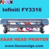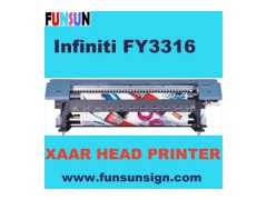 Large format printer: Infiniti FY3316B is with16 XAAR128/360 head solvent printer, 4 colour, is the best printer in China. Pls check our website, or give me email, if you need any more question or pricelist of our large format solvent printer. New frame design: * Simple assembles arms, easy installation * Fast and fluent X axis moving system * High printing resolution High speed printing port: * USB2.0 high speed data port * Ensure high speed and quality and long scale output printing Machine is changeable with 4/8/12/16 print heads.