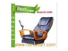 Pedicure SPA Massage Chair (SL-G580) Function: 1. Designed with a set of vertically movable, four-wheel driven muted massage hands. 2. Programmed with five emulational massage methods of shiatsu, kneading, flapping, knocking and synchronous kneading & flapping. 3. Automatic massage for the upper body. (There are three optional modes for the shoulder and neck, the upper body, the back and waist). 4. Manual massage for the upper body in three options, namely overall, partial and fixed massages, with five levels of speed adjustable respectively. In the state of fixed massage, the massage hands can move up and down; In the state of flapping, shiatsu and knocking, the width between the two kneading balls is adjustable with three levels: Wide, Medium and Narrow. 5. Seat cushion air-pressure massage: Five built-in airbags, four air-pressure massage modes and two intensity options. 6. Backrest can be electrically reclined & declined. 7. Stretch the seat horizontally back and forth for 120 mm. 8. Reverse the armrest back by 90° . 9. with LCD displayer.