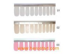 100% Polish Nail Stickers Application: 1. Select appropriate size. 2. Cut down the sticker 3. Pull off clear strip 4. Hold silver tab and peel away 5. Hold ail sticker by silver strip and place rounded at nail base. 6. Smooth nail surface 7. Remove surplus by folding nail sticker under the nail, the excess tears away easily We are professional supplier of nail art products as nail art, nail sticker, nail file, Nail buffer, nail brush, acrylic brush, manicure machine, nail dust collector, Nail art UV Lamp, etc. Welcome to write us email to ask for prices and more details! Welcome to wite us e-mail to ask price and more details. We will reply you within 24 hours
