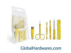 6pcs PVC manicure set including:nail file,nail clipper, paper file, tweezer, cosmetic scissors,double-edge stick