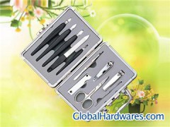10pcs easy carry manicure set. description:Manicure Kit/Manicure Nail Tool/Manicure Tweezers,10pcs manicure tools in a PVC/PU case with metal frame.client's design and logo is welcomed. Material: stainless steel, Plated chrome&Plastic,PVC/PU case; packing detail:polybag and white box, 24SET/CTN 43*31.5*22CM G.W/N.W:14/13KGS