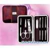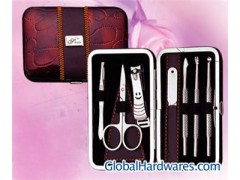 7pcs elegance manicure set. description:Manicure Kit/Manicure Nail Tool/Manicure Tweezers,7pcs manicure tools in a PVC/PU case with metal frame.client's design and logo is welcomed. Material: stainless steel, Plated chrome&Plastic,PVC/PU case; packing detail:polybag and white box, 96SET/CTN 37.5*35*29.5CM G.W/N.W:20.5/19KGS