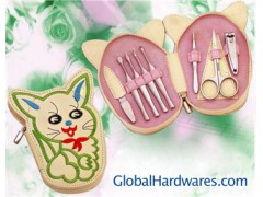 8pcs lovely manicure set. description:Manicure Kit/Manicure Nail Tool/Manicure Tweezers,7pcs manicure tools in a PVC/PU case.client's design and logo is welcomed. Material: stainless steel, Plated chrome&Plastic,PVC/PU case; packing detail:polybag and white box, 120SET/CTN 43.5*24.5*44.5CM G.W/N.W:13.5/12KGS