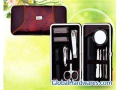 12pcs elegance manicure set. description:Manicure Kit/Manicure Nail Tool/Manicure Tweezers/mirror/comb/shaver,,12pcs manicure tools in a PVC/PU case with metal frame.client's design and logo is welcomed. Material: stainless steel, Plated chrome&Plastic,PVC/PU case; packing detail:polybag and white box, 72SET/CTN 38.5*35*36CM G.W/N.W:20.5/19KGS