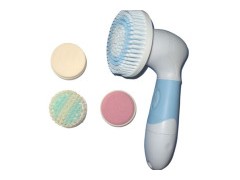 1) Waterproof, convenient for usage in bath time 2) Soft handle makes easy grasp, not likely slippy 3) Compact design, 4 accessories included: A. Big brush for body clean B. Small soft brush for facial clean C. Face sponge for better moisture D. Hard cell remover for treatment under foot or elbow 4) Strong power, not easy to stop 5) Voltage: 6V, 4pcs AA batteries 6) Unit size: 176.5x76x47mm