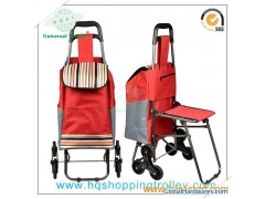 Folding Shopping Trolley Bag With Chair 1.EACH PART SIZE Item No.: HQ-6002BProduct size H95xW36XD54cm. Bag size H54xW33XD21cm. Wheel diameter 16cm 2.EACH PART MATERIAL Tube Material Steel tube,dia:16mm,thickness:0.6mm-1mm. Bag Material 600D polyester,grid,microfiber,pv;solid or requestment. Wheel Material EVA foaming and pp. Handle Material PP or sponge. other plastic parts PP. 3.PACKING DETAILS Packing: Each in a pp bag,6pcs in one carton. Carton size 95X36X55CM. G.W/N.W. 16/15KGS. Container Qty 900pcs/20GP;1850pcs/40GP;2170pcs/40HQ. 4.REMARK MOQ 500pcs per model. Delivery time Within 30 days after receive customer's deposit or L/C. Payment term:100%T/T,30%deposit;Balance B/L copy at sight.