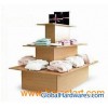 Material: MDF board Facing: melamine finish Construction: all way and 3 square tier island display Solid structure, functional display with hooks and flexible assembly Various colors are available Suitable for enterprise products showroom, shop, supermarket, boutique shopping, fashion retailer, home and exhibition hall Customized sizes are available Size: 120 x 60 x 125cm Certifications: CE and CARB