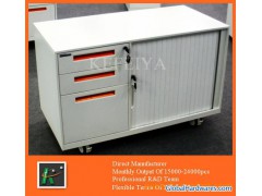 Item 2013 New Design Flap Series Tambour Door Office Cabinet UsageSuitable for office, school, hotel, hospital and home etc.FunctionUnder the office desk, can hang file folders and store simple articlesBand nameKefeiyaModel FLAP-RT-02StructureShipped assembled Material0.7mm cold rolled steel before sprayingSurface treatmentDurable powder coating finish, no harm to people and surrounding environment , no poison and side-effect, no smell when useSpecification 1000W*500D*560H ColorWhite or any RAL colors available.Packing detailsWith poly foam inner lining and multilayer carton box outside.Features of Steel Tambour Door Cabinet a) thin edge new design, b)square sparate recessed handles (any color available), c) Assemble; d)anti-tilt construction, e) without castors 560mmH; castors size is customised f) Standard tamber doors are Rehau brand, other domestic brands available; g) no door combination cabinet available h) All pedestal and cabinet’s drawers are fixed with full extension slide (ball bearing slide) Available1. Lock, color, size, tag, vent for your choice.2. Customer’s designs and logos,OEM acceptableMarketJapan, USA, South America, Europe, Asia etc.