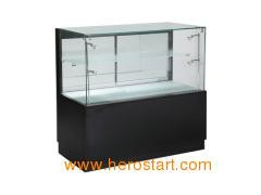 KDCA2 Shopping Counter Showcase Discription: 1. Tempered glass 2. Black Wood body & glass at top 3. CE, UL certification 4. 4 20 watt halogen lights on sides. (can change into LED lights) 5. Electric with security locks 6. Storage: 357mm ( it can select to install wheels ) 7. Dimension: 1200(W)*600(D)*900(H)mm Dimension(WxDxH) 1200x600x900(mm) Top canopy / Storage 357mm Color Black Package Build- up Terms of Payment T/T Trade Terms FOB Shenzhen