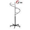 Product Description A) Spiral display stand is useful for displaying garment, handbag, ties, shirts etc in a retail store or supermarket B) it can hold up to 30 garments C) Material: Iron wire C) Finishing: Chrome D) Dimension of stand: H152cm*W53cm E) Pack: PE bag+ carton, F) Five wheels, easy to movelight weight and easy assembly
