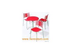 Description: Bacardi table and Eves chair High quality plastic and steel tube Stackable chair save a lot of place and freight cost Steady and durable Environment friendly, green product ISO certificated: ISO9001 Table size: Dia. 63xH75cm Chair size: D48.5xW51xH79xSH45cm Packing way: Table top 5PCS/CTN Table leg 1set/CTN Chair 4PCS/CTN Mixed order allowed