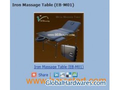 Iron Massage Table Model: EB-M01 Product Description 1. Main material: High quality iron, leather style vinyl, 5cm thick high density foam padding with two layers system, quality hardware and cabling. 2. Adjustable height range of 68cm to 79cm ( 27inch to 31inch). 3. The table has fixed headrest and widening armrests 4. Powder coated and electroplated 5. Package: One piece to a carton. 6. Squeak-proof and designed for easy set-up, no tools needed for assembly Iron Massage Table
