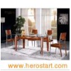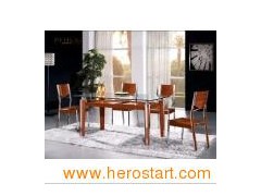 Product Description Dining table/chair(CT-8051&CY-20) 1. Modern middle high-grade dining set 2. Two color: Brown and cherry 3. It could be knocked down 4. Raw materials: Tempered glass, stainless steel, rubber wood, surface veneer, MDF 5. We have our original product size, we also could offer the service of making by your size 6. The common package is carton, wood package which is outside the carton to make sure the goods from damage is also available