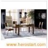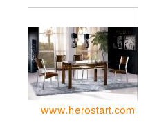 Product Description Competitive home furniture dining table/chair(CT-8039&CY-7) 1. Modern middle high-grade dining set 2. Two color: Brown and cherry 3. It could be knocked down 4. Raw materials: Tempered glass, stainless steel, rubber wood, surface veneer, MDF 5. We have our original product size, we also could offer the service of making by your size 6. The common package is carton, wood package which is outside the carton to make sure the goods from damage is also available