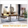 Product Description Dining furniture(CT-8040&CY-17) 1. Modern middle high-grade dining set 2. Two color: Brown and cherry 3. It could be knocked down 4. Raw materials: Tempered glass, stainless steel, rubber wood, surface veneer, MDF 5. We have our original product size, we also could offer the service of making by your size 6. The common package is carton, wood package which is outside the carton to make sure the goods from damage is also available