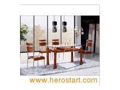 Product Description Dining furniture(CT-8043&CY-2) 1. Modern middle high-grade dining set 2. Two color: Brown and cherry 3. It could be knocked down 4. Raw materials: Tempered glass, stainless steel, rubber wood, surface veneer, MDF 5. We have our original product size, we also could offer the service of making by your size 6. The common package is carton, wood package which is outside the carton to make sure the goods from damage is also available