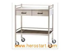 Product Description Size: 800 x 490 x 900mm Stainless steel construction 2 x Half Drawers 125mm deep Safety folds to all edges Reinforced shelves 75mm castors