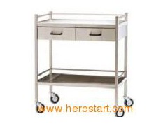 Product Description Size: 800 x 490 x 900mm Stainless steel construction 2 x Half Drawers 125mm deep Safety folds to all edges Reinforced shelves 75mm castors