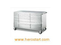 Product Description Products name: Stainless Steel Tool Chest Our tool chests & cabinets are ideal for residential and commercial use such as garages, workshops, car repair stores and other applications where mobility and weight is considered as key factor in choosing a right tool storage system. Now we have three main types of our products: Stainless steel, powder coated steel and powder coated steel with stainless steel drawer fronts. Full-extension Ball-bearing slides. Heavy duty casters Stainless steel for Shell, drawer fronts(16gauge-18gauge) or customized. Drawers inners of Power Coated steel. Power Coat paint finish One time extrusion molding showing a finished smooth look. Safety lock system prevents the drawers from accidentically opened. 6''x2'' casters Dimension: 1830x760x1139mm Pls kindly contact us for more details.