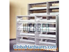 Description: Mobile book holders, wooden side panels are available, different layers, adjustable shelves, made of 0. 7mm cold roling metal sheet Model and size(mm): Double side book rack (long) S-BR1521E---W1500*D552*H2100 with 10 shelves S-BR1221M---W1200*D552*H2100 with 10 shelves S-BR1021M---W1000*D552*H2100 with 10 shelves Double side book Rack (short) S-BR1513M---W1500*D552*H1340 with 6 shelves S-BR1213M---W1200*D552*H1340 with 6 shelves S-BR1013M---W1000*D552*H1340 with 6 shelves Different color is available and custom-made production is acceptable