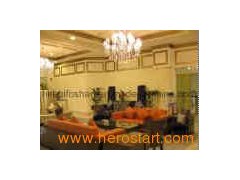 Series: ACACIA 4 star hotel Location: R. A. K, UAE General Use: Hotel lobby Item included: Leather sofa/ tea table/ arm chair/ round sofa/reception Desk/ sofa chair/ cushion/ lighting/ angle table Material: Solid wood /stainless/ sponge/ leather or fabric Appearance: European modern style