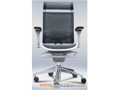 Materials: 1. Headrest: Heatless Korea Mesh (KM-10) 2. Backrest: Heatless Korea mesh(KM-10) 3. Seat: Heatless Korea mesh(KM-10) 4. Base: Polished aluminum star base. 5. Castor: Black PU castors. 6. Lumbar cushion: Square shape fabric with sponge 7. Lumbar support: Chromed aluminum. 8. Armrest: PU cover Functions: 1. Mechanism: Manual-control Synchronized, multi-angle tilt lock. Backrest tension adjustable. 2. Lumbar cushion: Adjustable(up & down) 3. Seat height: Adjustable(up & down) 4. Armrest: Height adjustable, left and right twistable, forward& backward applicable. 5. Headrest: Angle adjustable. 6. Seat slide: Forward& backward slidable.