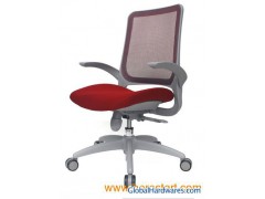 Materials: 1. Backrest: Grey frame with red Mesh. 2. Seat: High elastic foam wiht red fabric cover. 3. Base: Grey nylon star base. 4. Castor: Grey nylon castors 5. Armrest: Grey plastic. Functions: 1. Mechanism: Manual-control, multi-angle tilt lock. 2. Seat height: Adjustable(up & down) 3. Backrest tension: Backrest can be adjusted to user's ideal tension.
