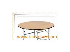 Commodity: Round banquet table Product Size: D. 150cm H. 75cm; D. 180cm*H. 75cm, Different sizes are available. Material: 25 mm thick Melamine facing board, or 18mm thick solid deck PVC facing board, 30*30*1mm power coat steel legs, they can be adjust 1-2 cm high.; Foldable legs for easy move and storage; Table top easy to clean