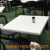 Corian solid surface restaurant dining table: Material: Modified acrylic or pure acrylic Size: As your requrest Shape: Round, rectangle, square(as your request) 12mm solid surface + 18mm plywood underneath Surface finishing: 1800grit polishing Application: Coffee table top, dinner table top, tea table top, etc. Colour: More than 100 colours for the customer to choose. And we Can match colour against customers samples. Table top edge: Bevel double, bevel top single, bullnose double, Bullnose half, Bullnose single, dupont double, dupont single and so on. Front panel & Back splash & Side panel: The size upon the customers specifying design specification. All of these we can produce against customers design specification. Features 1. Offering an elegant look and cool feel 2. Extremely hard and solidity, indestructible; 3. Brilliant finish with variety of colors and textures; 4. Non-porous and resistant to scratches, stains, heat and bacteria. Acid, Alkali and pollution resistant 5. Excellent tenacity, can be easily bent into various shapes; 6. Smooth, solid, inconspicuous seams; 7. Superior stain/bacteria/chemical resistance; 8. Easily maintaining and repairable; 9. Joint invisible, more beautiful appearance. 10. No bubble, clear more convenient.