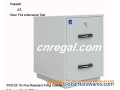 FRD680-20:1hr Fire-Resistant Filing Cabinet 2 Drawers. Depth:680mm Outside size: (H)864*(W)551*(D)680mm (H)34.01''*(W)21.69''*(D)26.77'' Packing size: (H)980*(W)560*(D)730mm (H)38.58''*(W)22.05''*(D)28.74'' Inner file drawer size:(H)294*(W)388*(D)492mm (H)11.57''*(W)15.28''*(D)19.37'' Net weight: 182kg(430lbs) Gross weight:196kg(Carton box with plywood pallet)/431lbs Wheels on the base. Passed the Japanese "JIS-S 1037-1989 " Standard 60-minute fire test, the temperature inside the Paper Drawer is controlled under 115.5 Centigrade degree under 1000 degree. (Report No.: 2003-0567) Surface finished with powder coating. Steel thickness of fireproof cabinet : Body 50mm / Front Drawer 72 mm